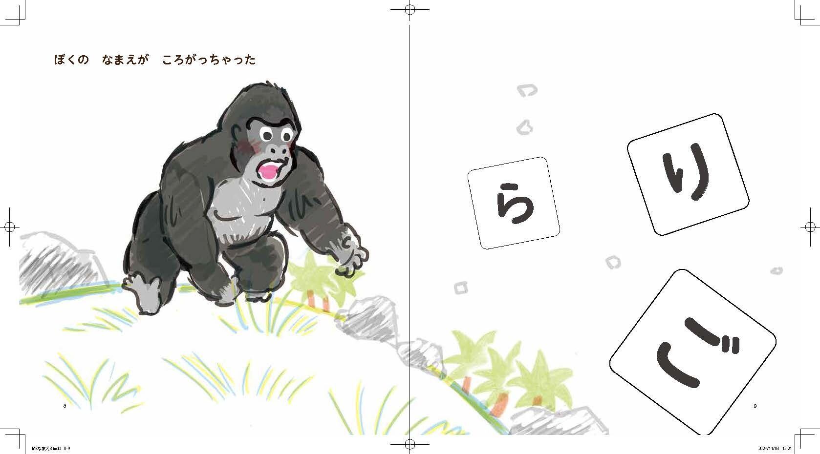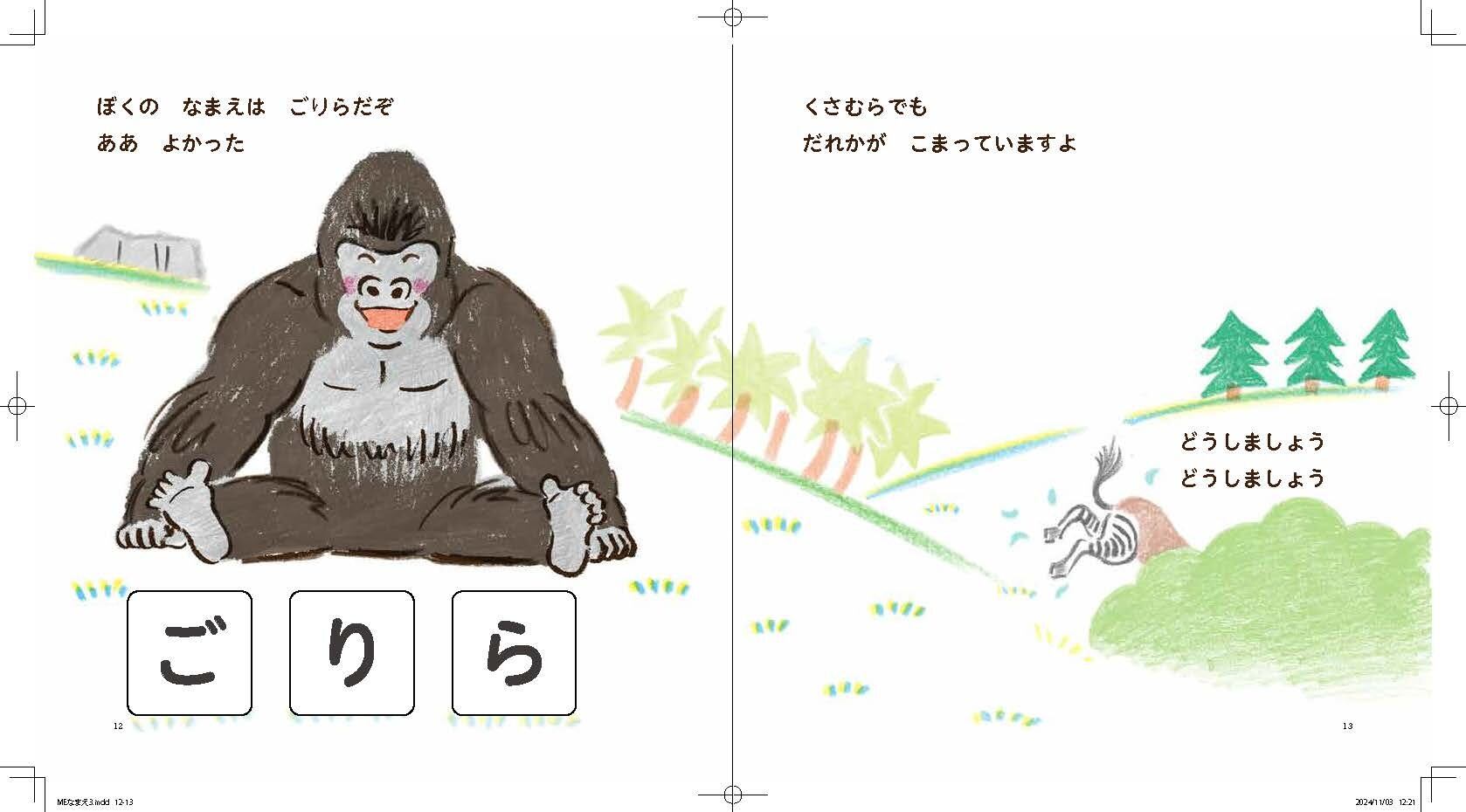 自分の名前がわからなくなった動物たちが、ひらがなカードを並べて、名前を探します。